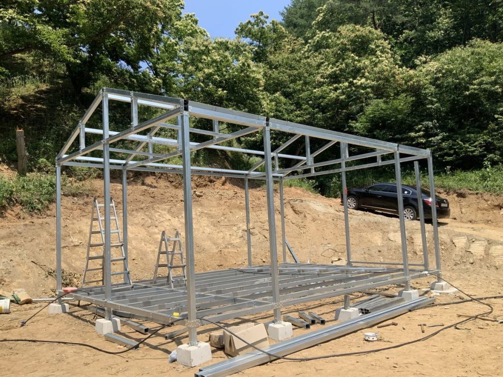 Structures are typically made of light steel or wood.